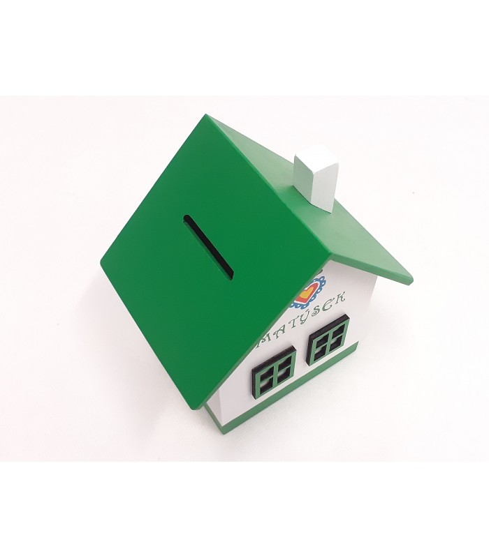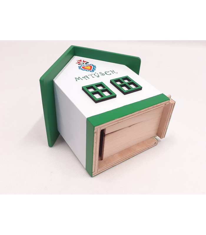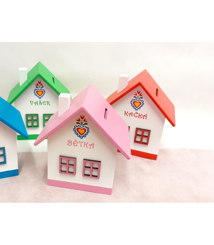 Pokladnička - domeček - je velmi originální! Pokladnička má vysunovací dno.