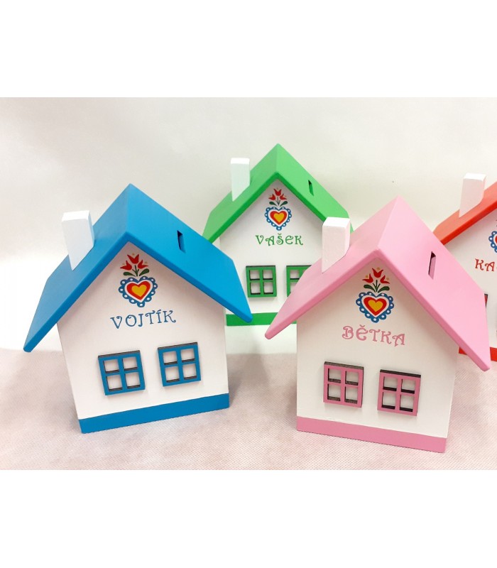 Pokladnička - domeček - je velmi originální! Pokladnička má vysunovací dno.