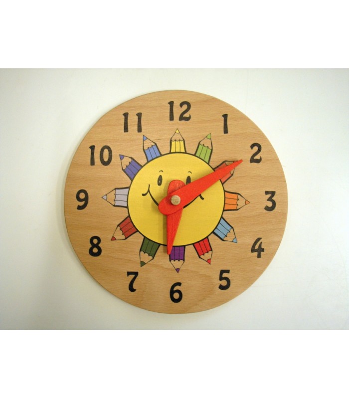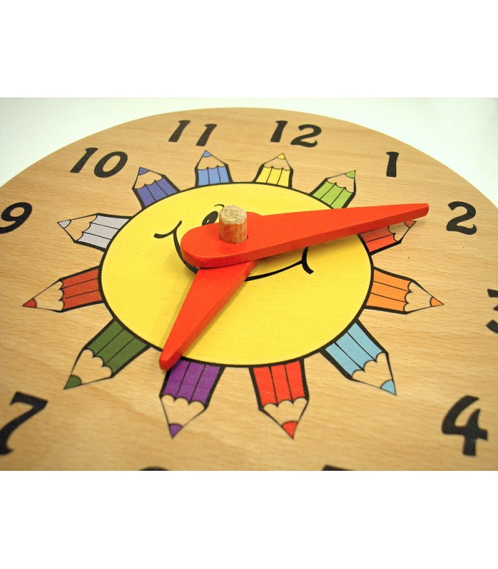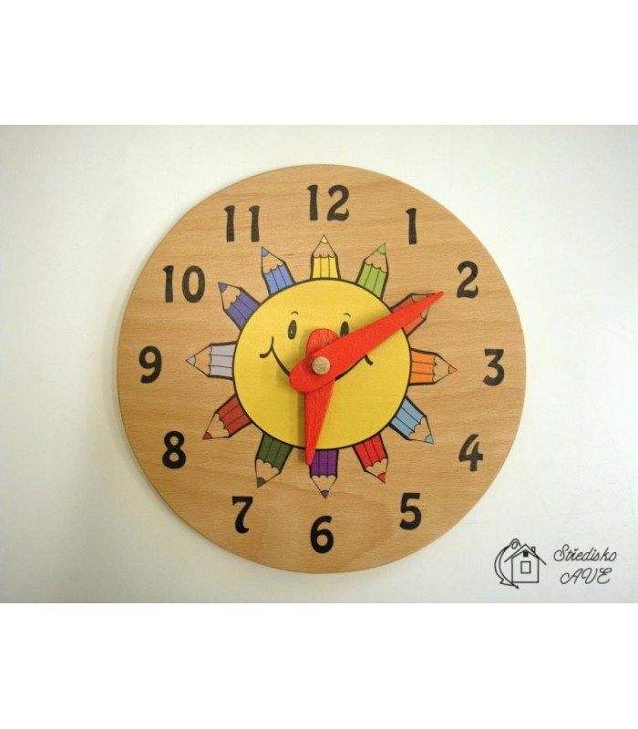 Dřevěná didaktická hračka v novém provedení s digitálním potiskem. Ideální pomůcka pro děti, které se učí poznávat hodiny.