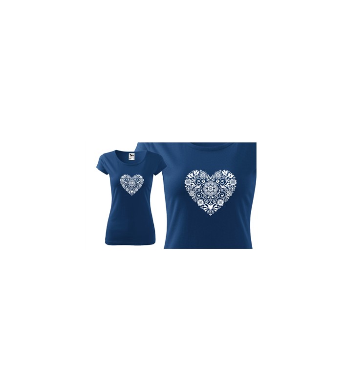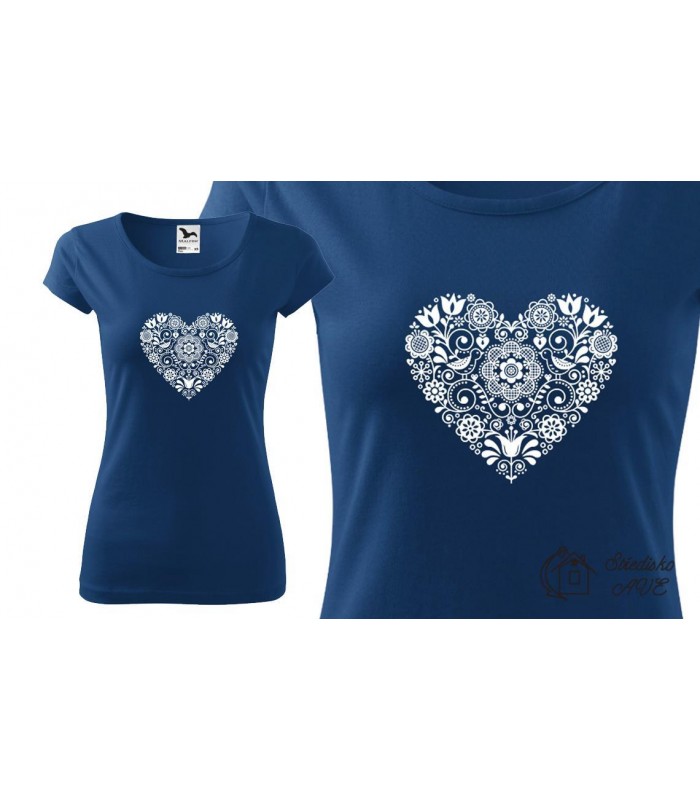 Dámské triko modré - potisk srdce - Sladíme Vás