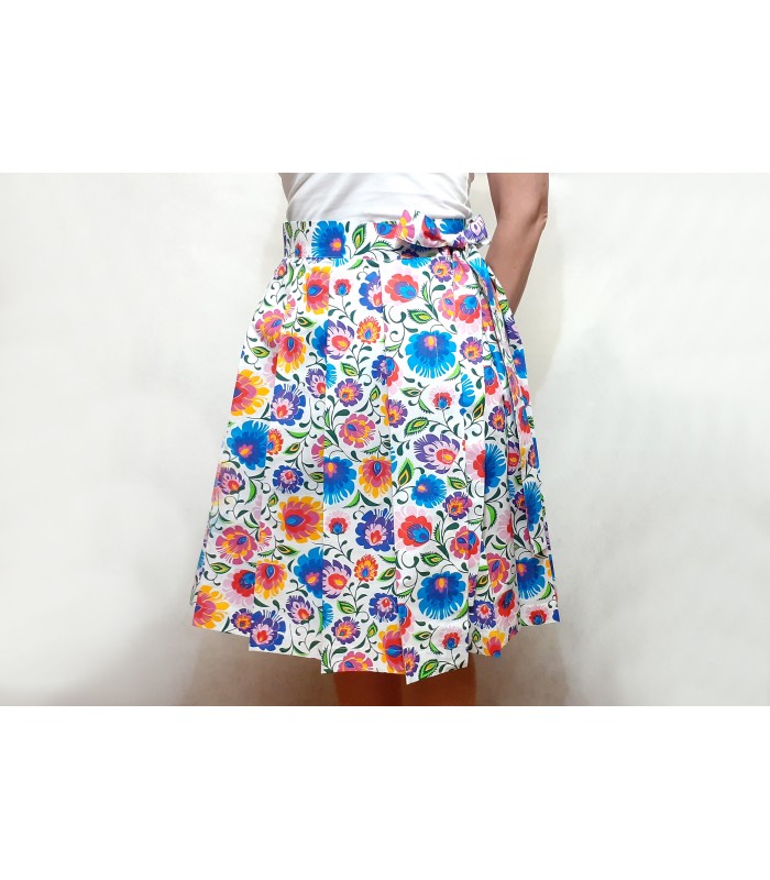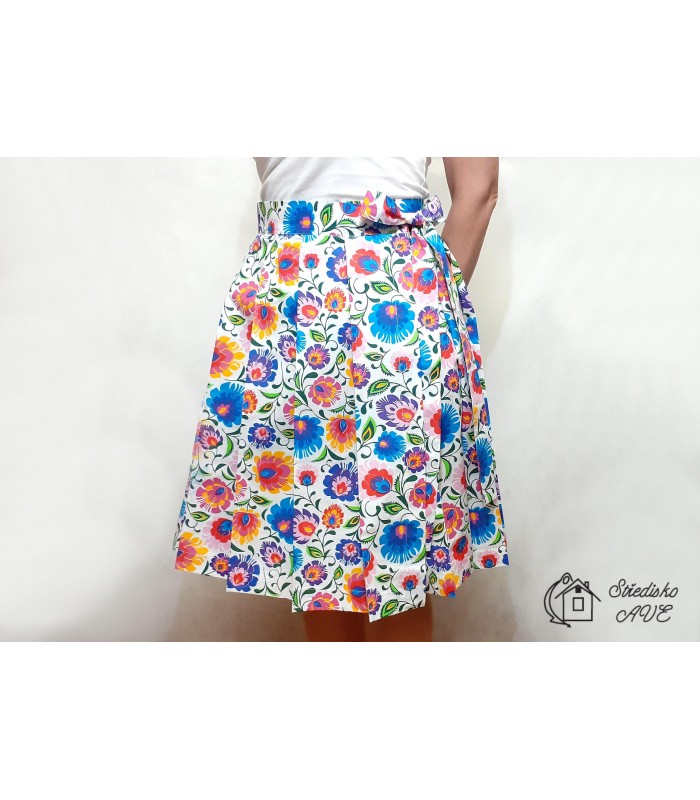 Dámská sukně zavinovací - vzor folklor na bílé - Sladíme Vás