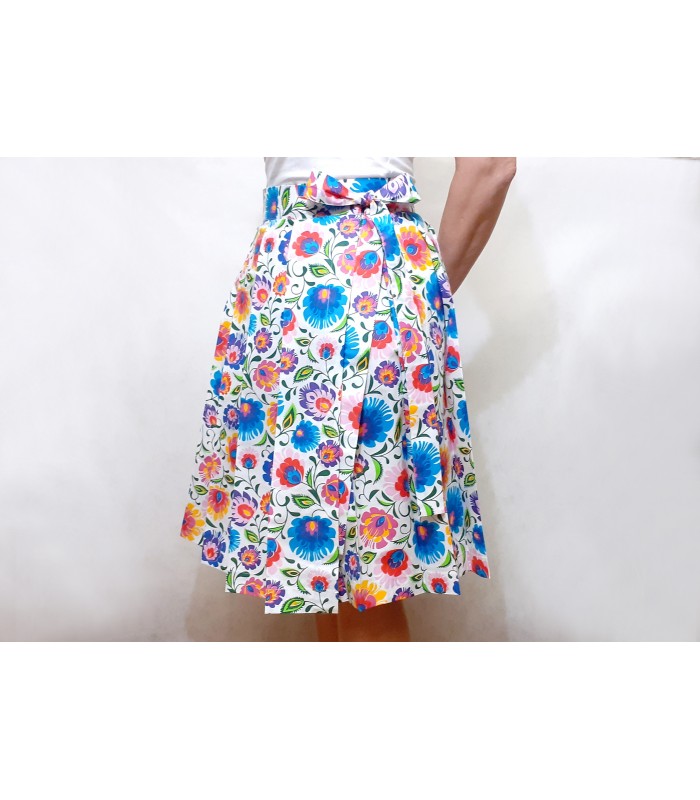 Dámská sukně zavinovací - vzor folklor na bílé Nové