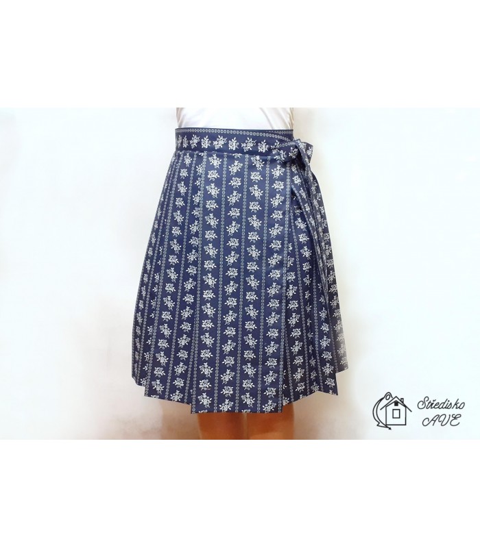 Dámská sukně zavinovací - modrá, květy v pruzích - Sladíme Vás